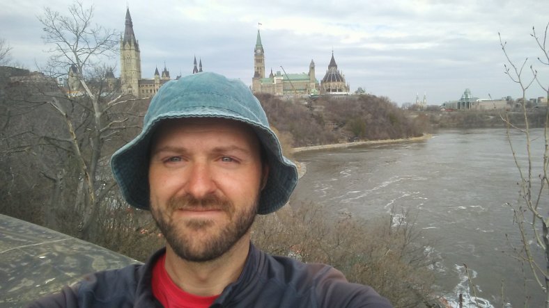 I had to snap a selfie with the Ottawa River and some important Parliament buildings in the background .