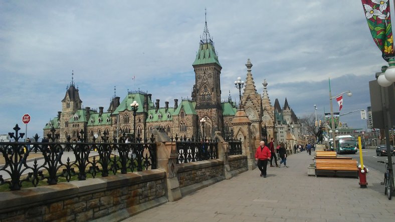 The streets of Ottawa next to one of the Parliamentary buildings.
