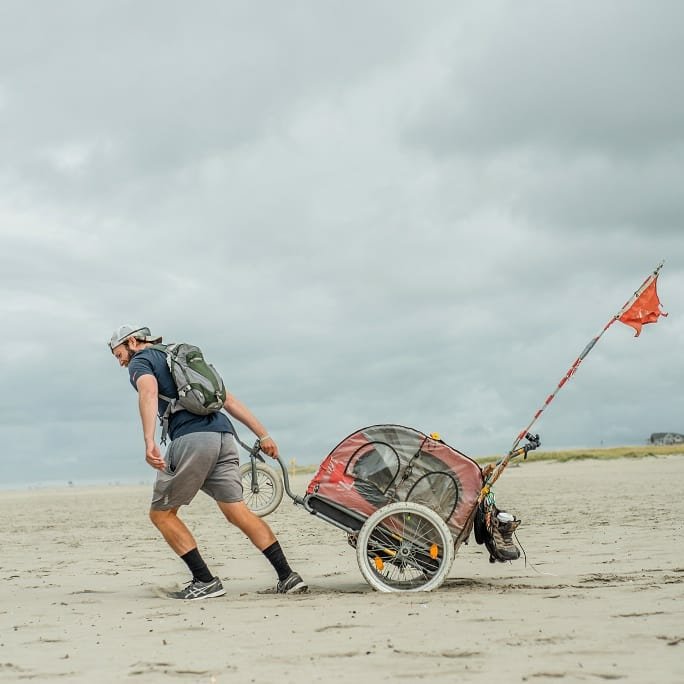 The cold water felt heavenly on my feet. I stood there for some time as waves soaked my knees and crashed against PJ’s wheels. Blisters from 3,400 miles of walking were soothed. The water washed away the loose skin from the soles of my feet. I felt like I was dreaming. And just like that, it was over.