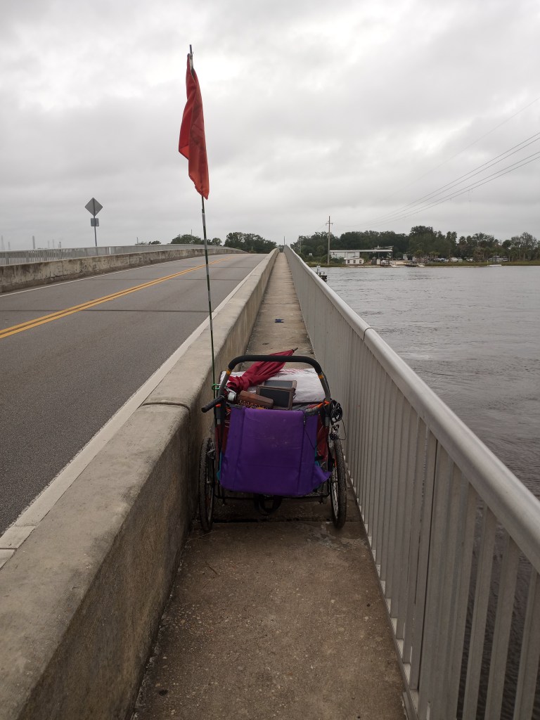 I thought I was starting my walk late enough in the South to avoid any tropical storms or hurricanes, but it is 2020…Tropical Storm Eta was slowly moving north towards Jacksonville for days prior to my walk beginning. I elected to get a budget motel room on the first night of my journey. The overnight forecast on the 11th looked terrible, and the storm was supposed to pass over the Jacksonville area around noon on the 12th. Finally, an ETA for Eta! Although heavy rains moved through overnight, the brunt of the storm passed south of me on day two. Eta had also weakened significantly. I decided to walk. Plus, the budget “motel” was quite possibly the worst lodging I have ever encountered. That says a lot coming from a guy who routinely sleeps under bridges and in the woods frequently. I would take a bridge over that place any day!