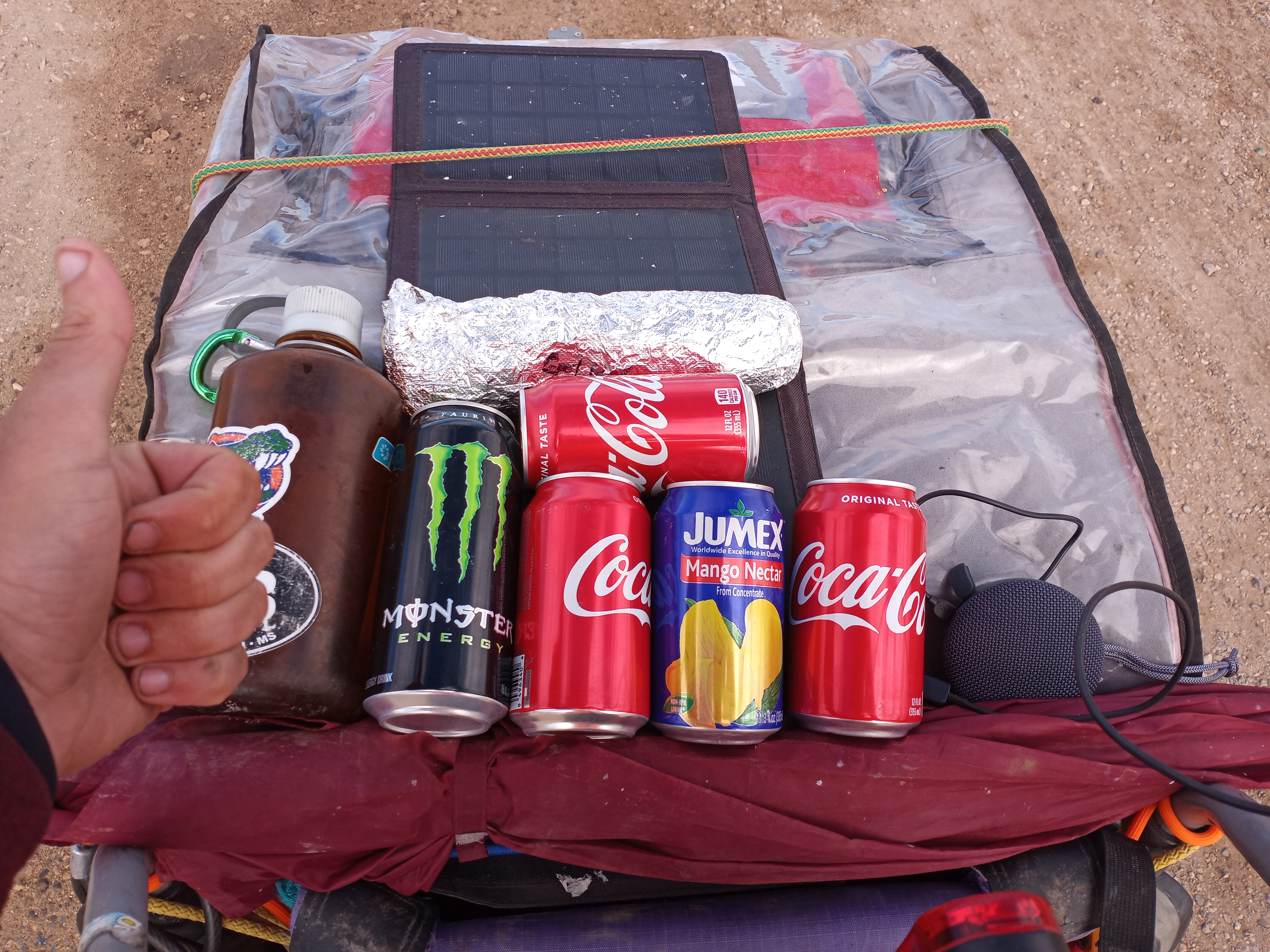 My Spanish isn’t good (I know plenty of swear words thanks to years of working in a Mexican restaurant, but it ends there), but I think my new friend Miguel understood what I’m doing and why. He sent me on my way with three Cokes, a Monster, a can of juice, and a tasty steak burrito. Thank you for the food and drink, Miguel!