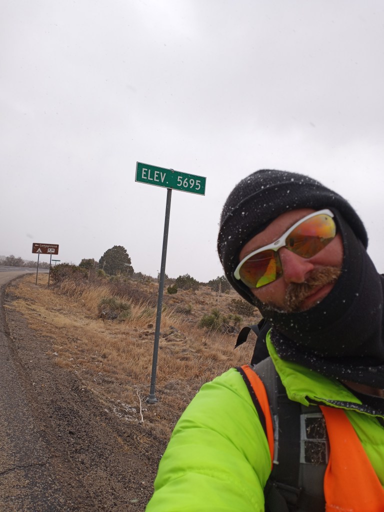 After climbing about 1,000 feet, snow flakes started flying. Every flake that the relentless wind blew into my face felt like a pin prick.