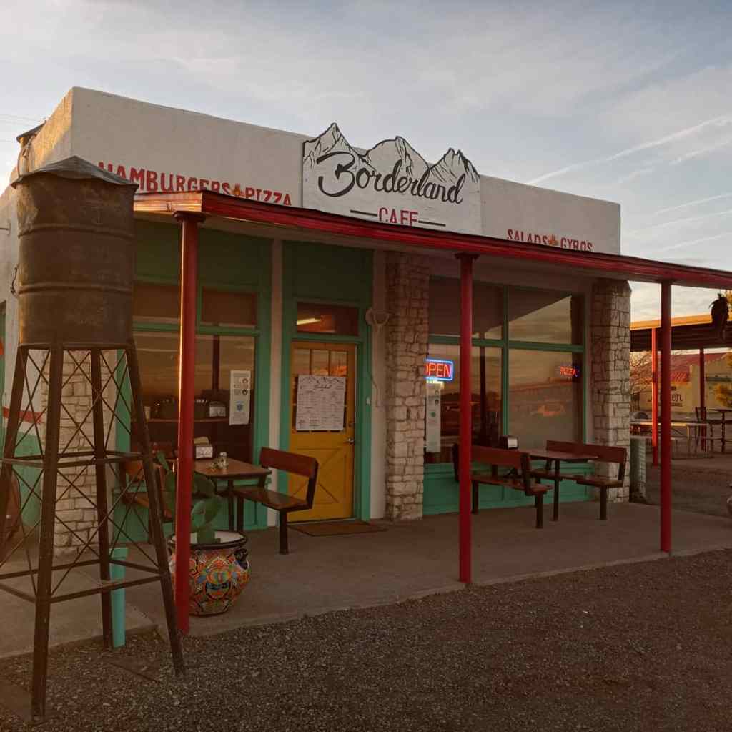 With beautiful weather and light traffic, PJ and I cruised to Columbus, walking 33 miles in just under 11 hours. We hit the Borderland Cafe with time to spare and enjoyed a delicious, leisurely dinner on the cafe patio (indoor dining in New Mexico is still banned due to COVID). I ate a massive Poncho Burger, complete with Hatch green chilis, enchilada fries, and a salad. Lawrence visited with me for a bit as I enjoyed the tasty meal and beautiful evening. I set up camp next to the restaurant’s patio. Thank you for the gesture of kindness, Conrad, and for your hospitality, Lawrence!