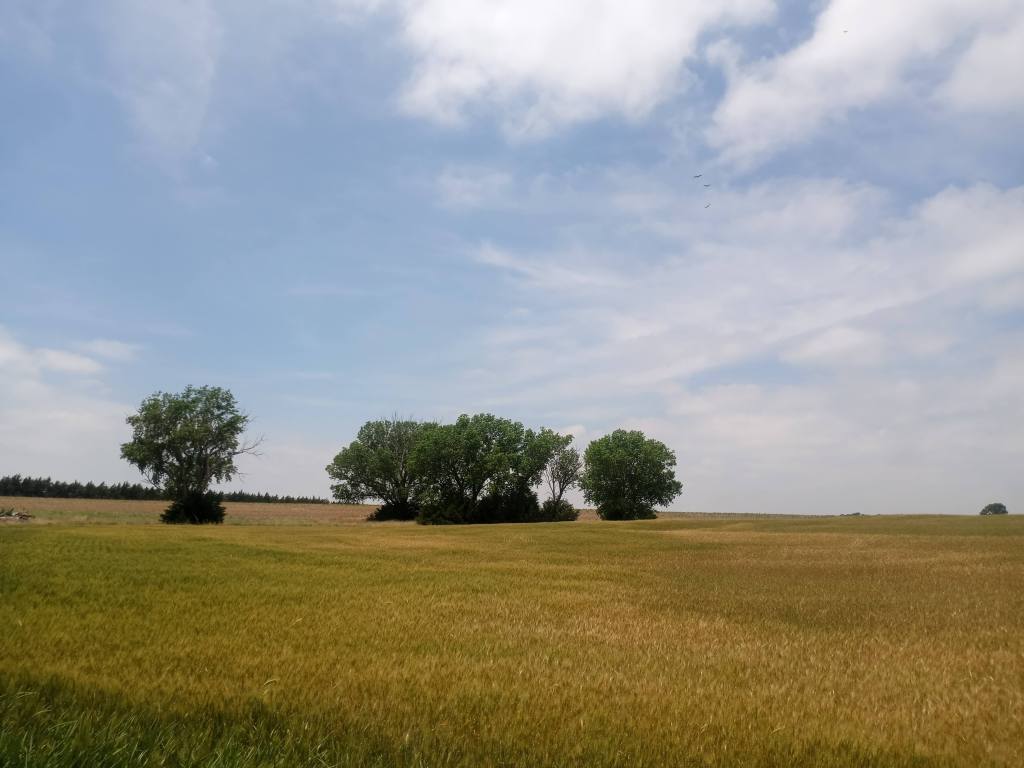 The landscape was different in August than it was earlier in the summer. In June, the native was lush. Blooming prairie sunflowers, purple coneflowers, and wild white indigo added splashes of color to the green grasses swaying in the breeze. Now, a dry summer left the prairie brown, parched, and dusty, other than a few plots of healthy sorghum and corn.
