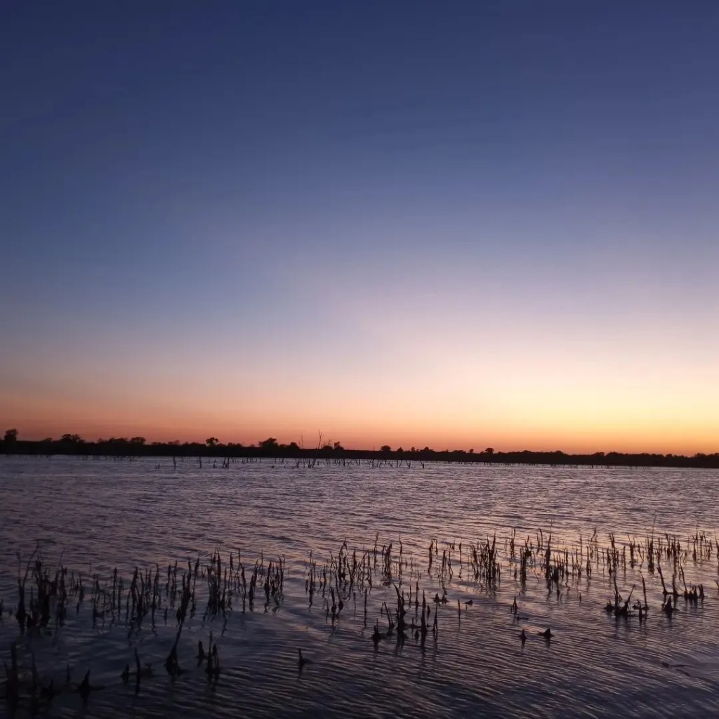 Sunset over Cedar Bluffs Reservoir. Broncos orange and blue!