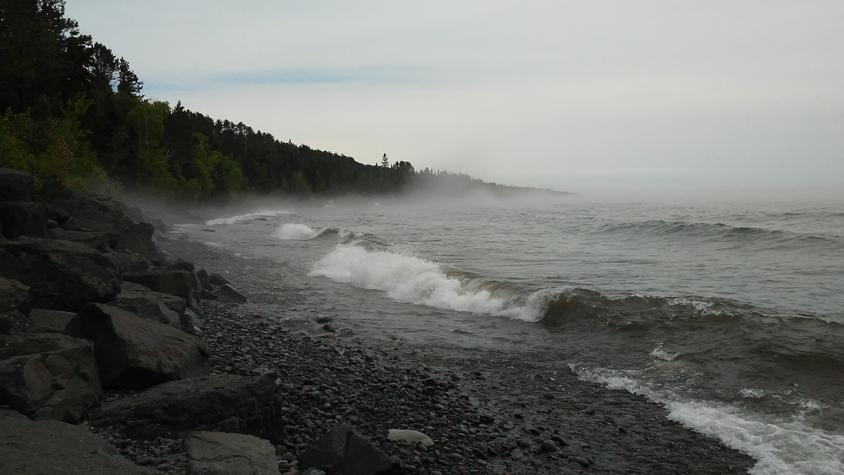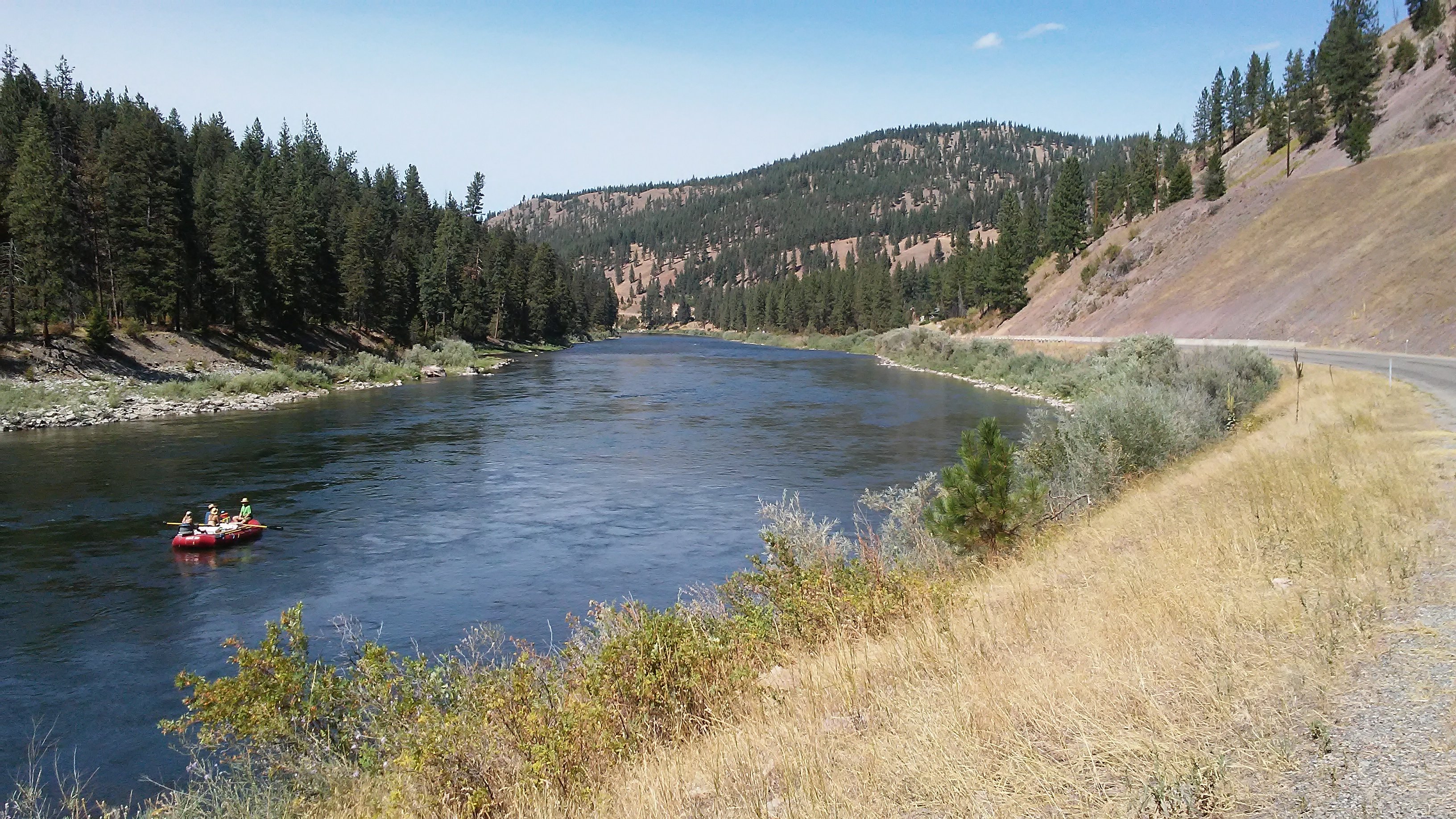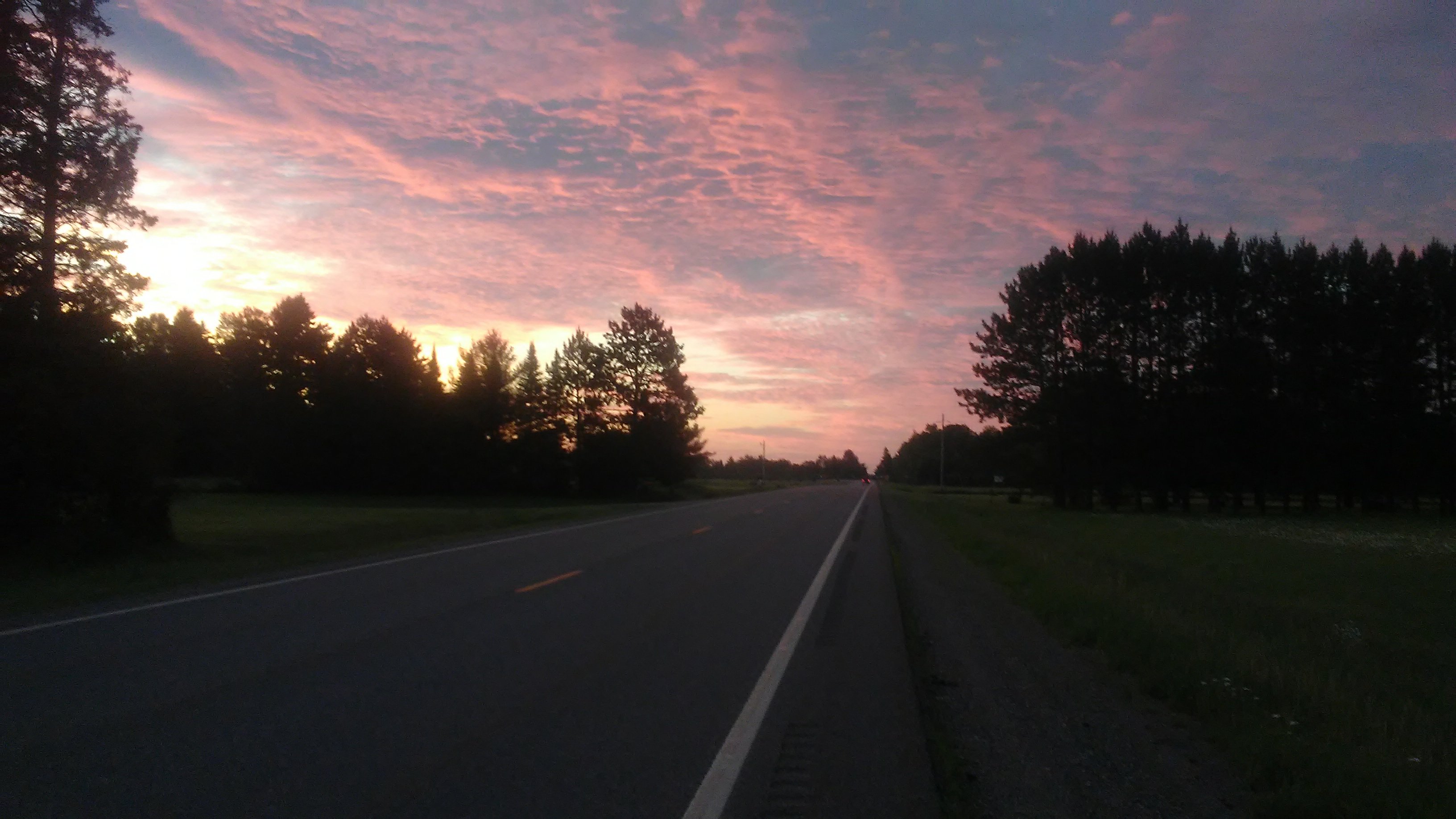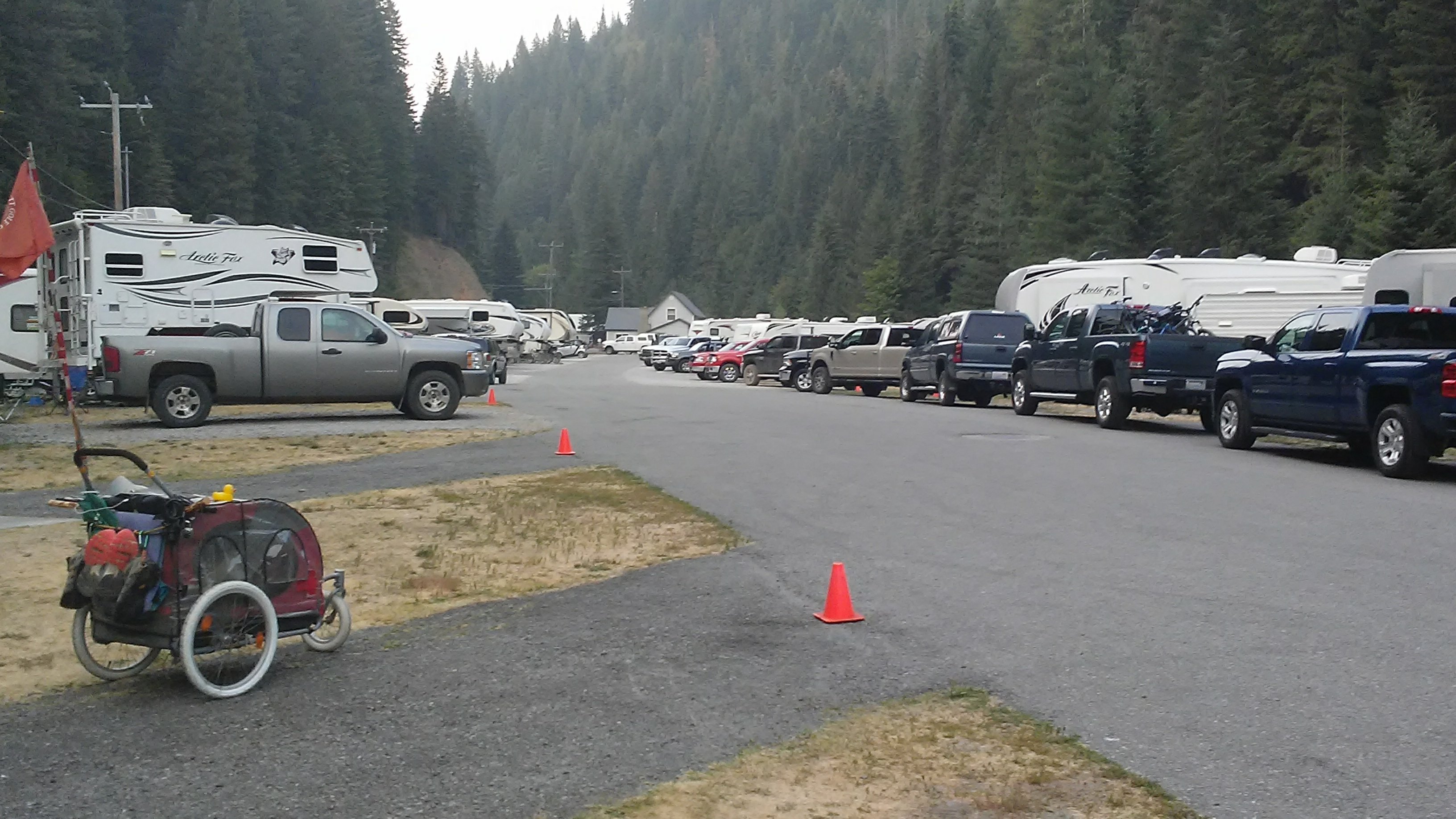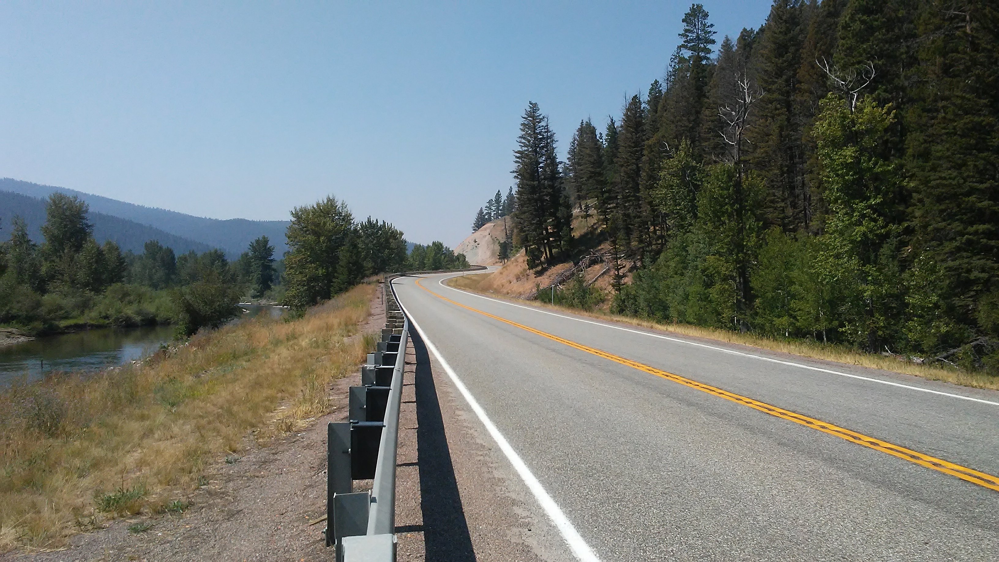 From there, the shoulder quickly dissapeared. PJ and I were faced with “Double G’s” (guardrails on both sides of the road), blind curves, and a new obstacle – shade. The massive trees that lined the highway cast shadows on the road, which would make it a bit tougher for cars to see us, especially when they would drive out of sunlight and into the shade. I lashed my bike light to the handlebars and put it in strobe mode to be more visible. Despite my strobe light, it didn’t feel like much of a party. I darted from one side of the road to the other when approaching a blind curve. Then ran back across when the road briefly straightened out. I wasn’t thinking about how many miles were left. I was too busy making sure PJ and I didn’t end up in the grill of a logging truck.