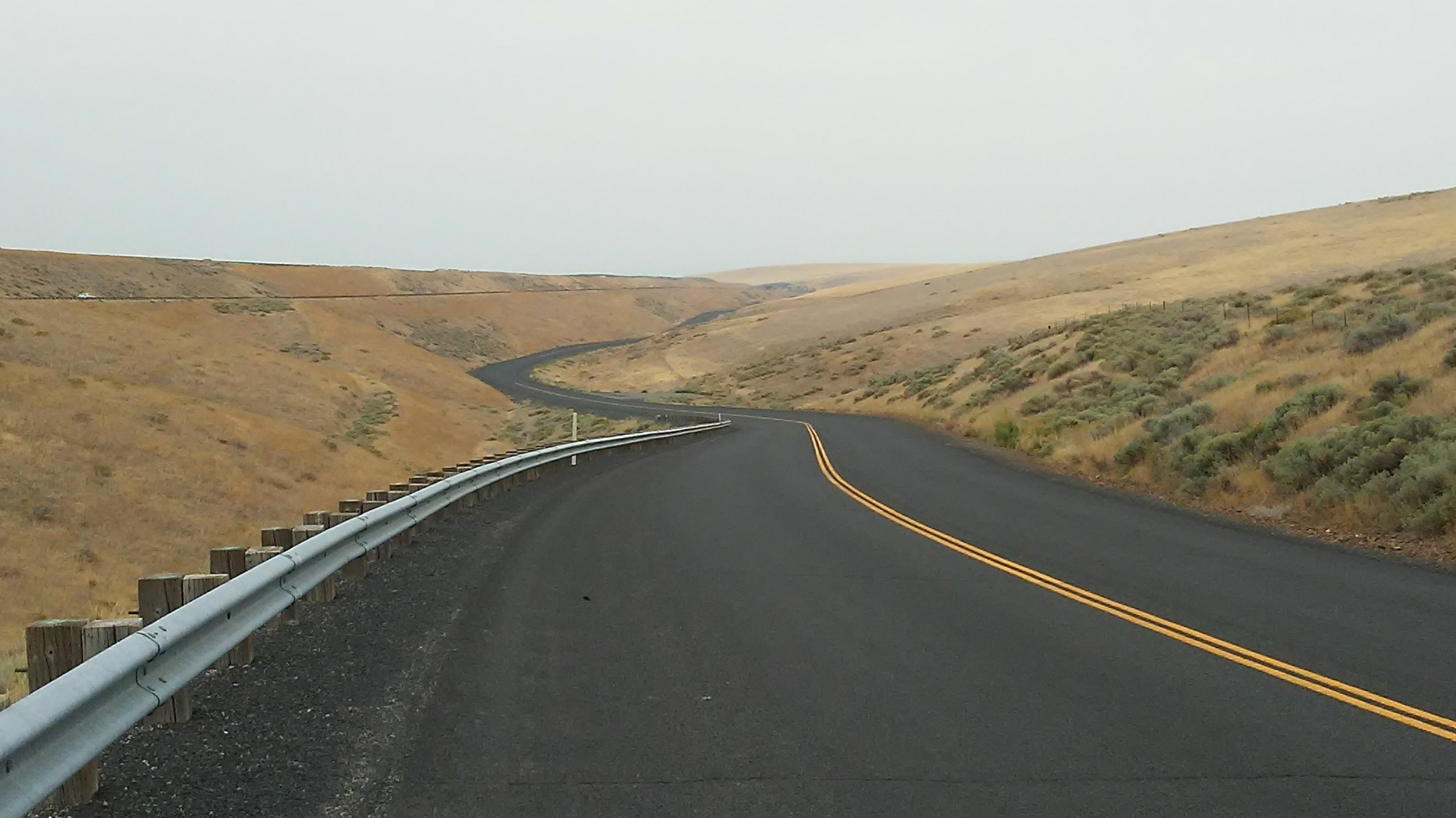 Today was a big day. I hoped to get through three of the four sections of I-84 I had deemed as dangerous in my planning. I walked with traffic from mile marker 56 to 51, avoiding a construction zone and blind curve around one of the massive canyon walls. The worst part of that stretch was a half mile section where PJ’s left tire was inches inside the white line. To my right was a guardrail and the Columbia River. There was nowhere to bail. I put my life into the driver’s hands. I let out a triumphant fist pump when we took exit 51.