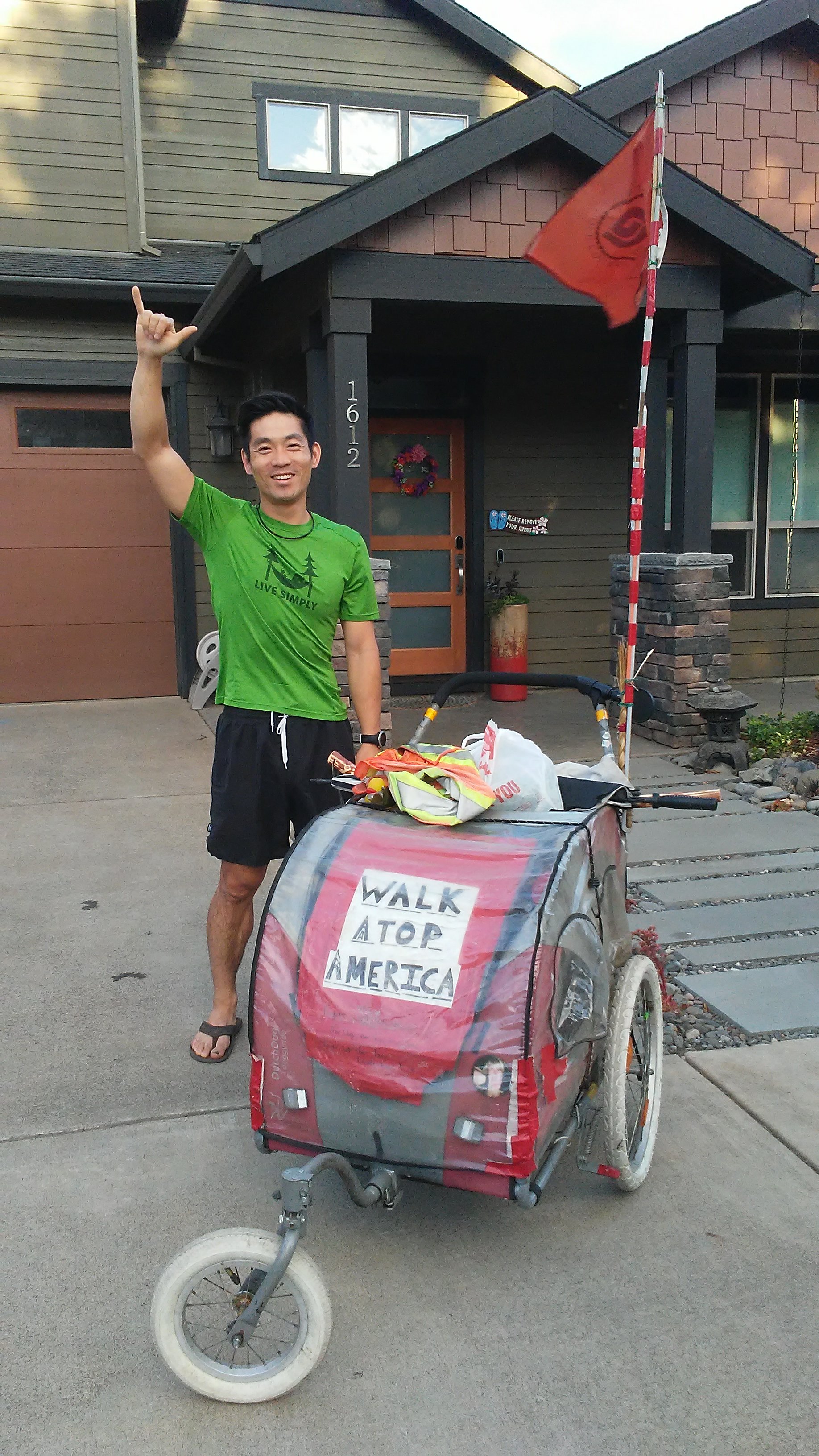 Once I got into town, I headed due south. Downtown Hood River sits on a little bluff above the Columbia. To get to Ian’s house, I had to climb out of the valley floor….again. The road I chose from downtown had a 20% grade. I took a running start but quickly slowed down. I wasn’t sure if I had enough energy to get to the top of the 75 yard hill. I had already walked 30 miles and was beat. PJ and I moved painfully slowly. A family walked past us, clearly amused. I was out of breath but felt like I owed them an explanation. I paused at an intersection. “I am walking across America. These hills suck after walking 30 miles already!” They laughed and approached me.