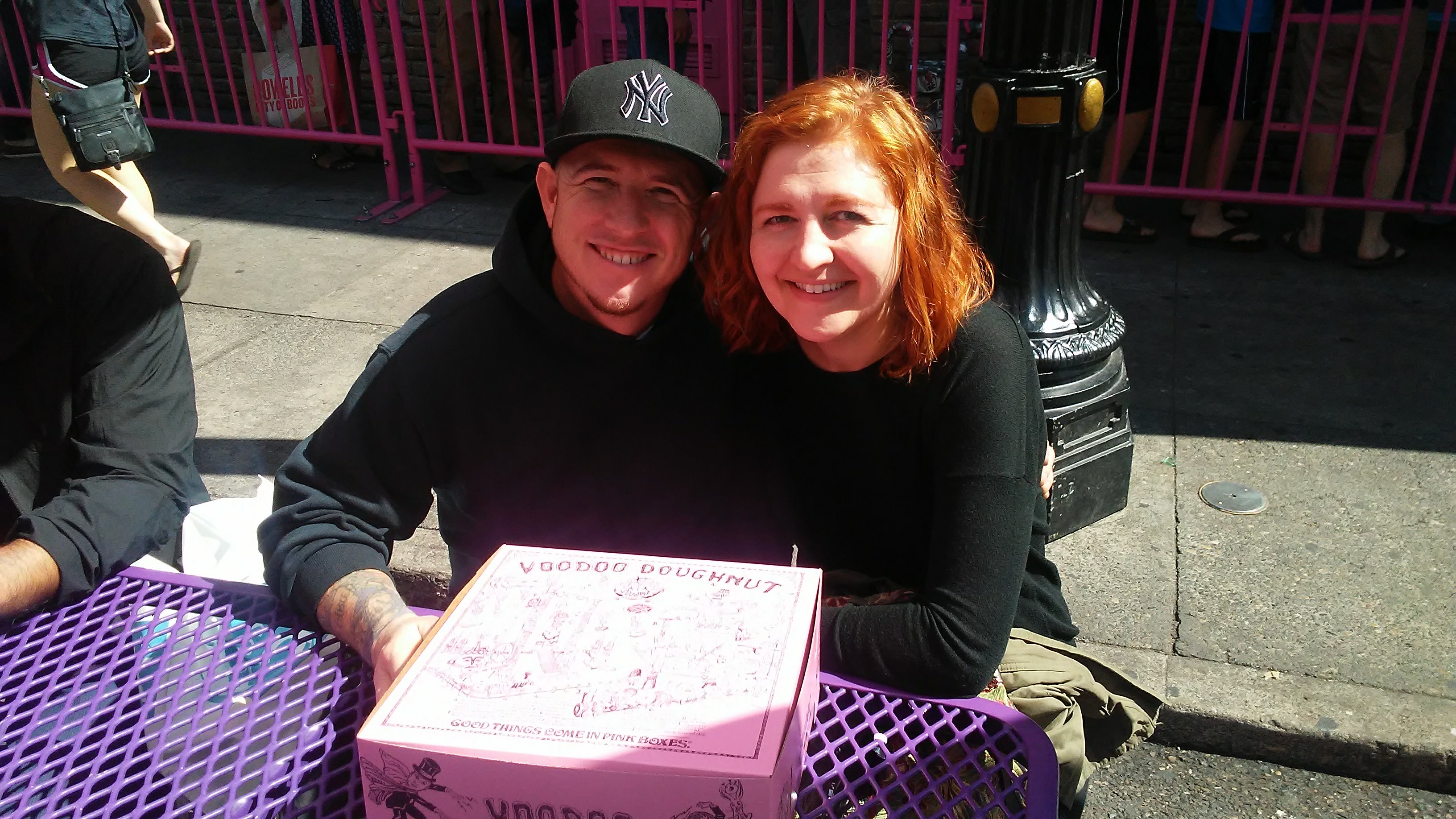Steve and Irene outside Voodoo Donuts.
