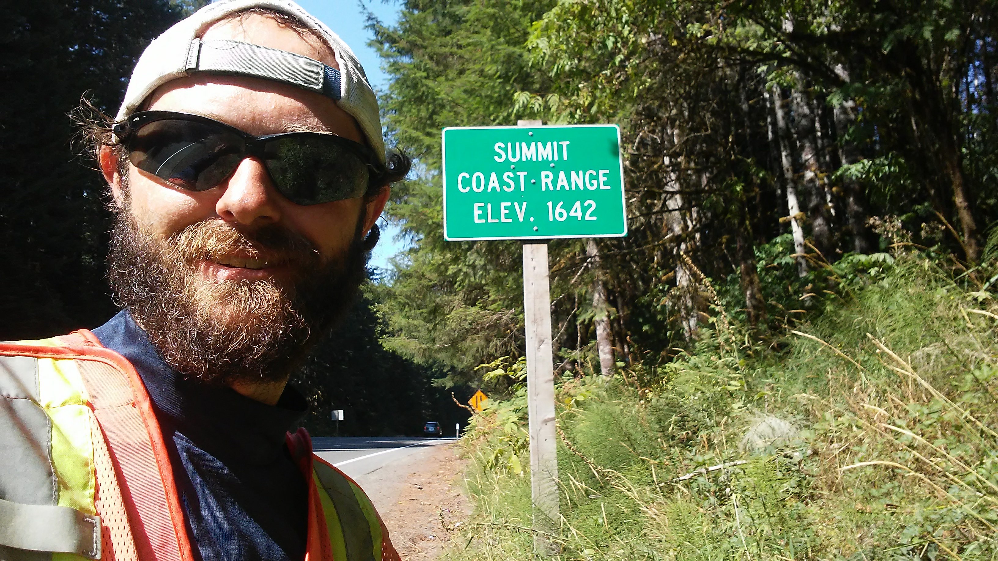 After a few easy miles, the highway began a steady climb through Oregon’s Coastal Range. The mountains weren’t massive, but a 1,000 feet of elevation gain still had my heart rate up. After lunch and a nap at a rest area, we reached the summit of the coastal range at 1,642 feet.