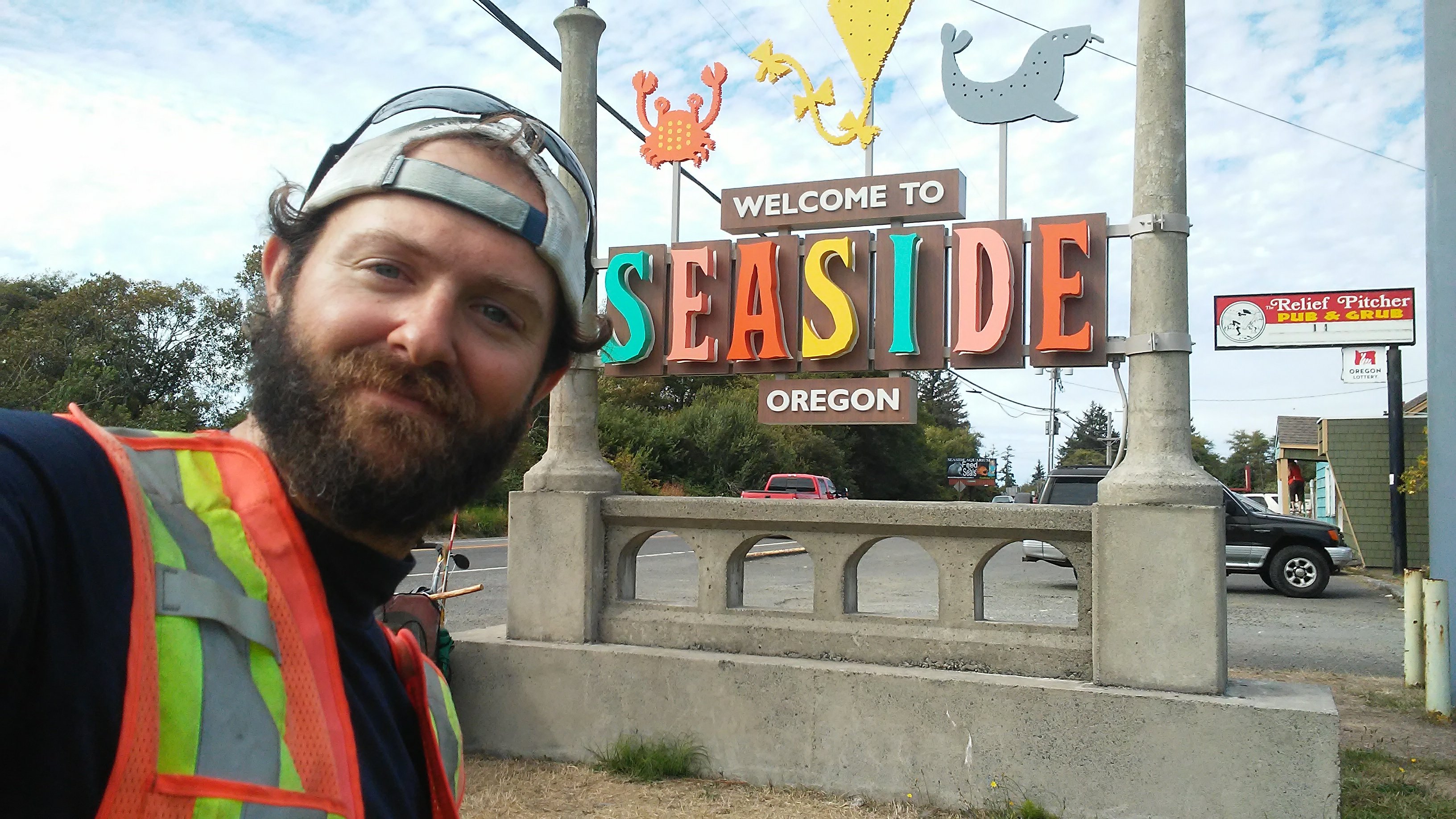 At 3 o’clock on September 7th I arrived at the “Welcome to Seaside” sign. Traffic was so heavy it took 10 minutes to get across the road so I could get a proper photo to commemorate the moment. Passing cars had no idea what I went through to get a picture next to that damn sign!